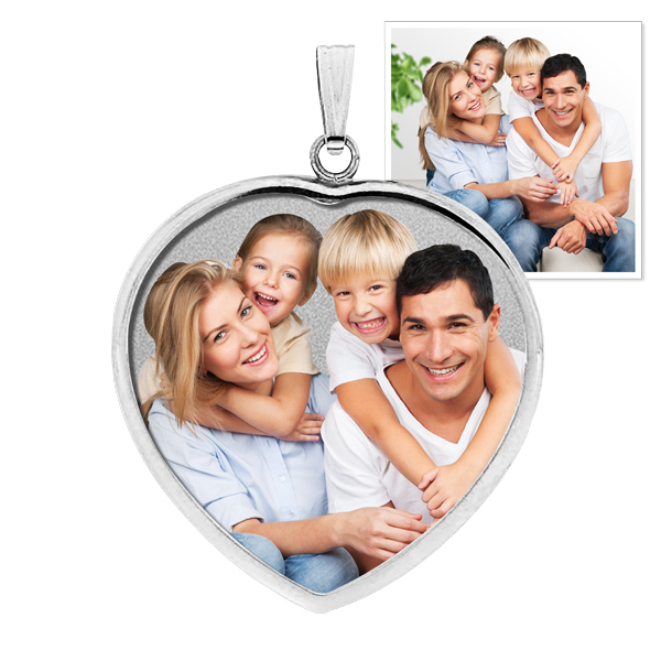 A:  Color Laser: Your photo in full color permanently lasered onto your charm. This process being the most detailed. We´ve had customers say, "My pendant actually looks better than the photo." A protective jewelry enamel is added to every "color laser" pendant to ensure that every day your charm will look as beautiful as the day you took it out of the box.