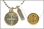 ' My Saint My Hero ' Petite Benedictine Cross Gold Tone Medal w/ 18" Chain